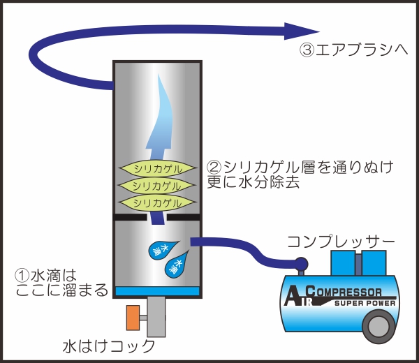 水混じりの圧縮空気から水分を除去する装置・・・。