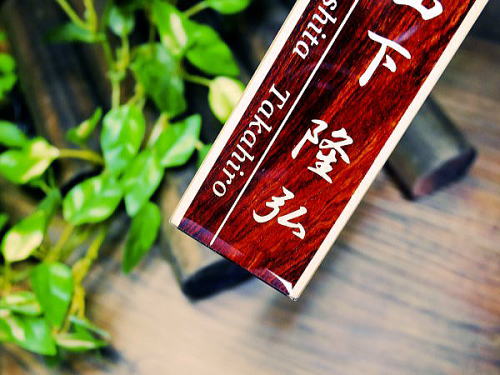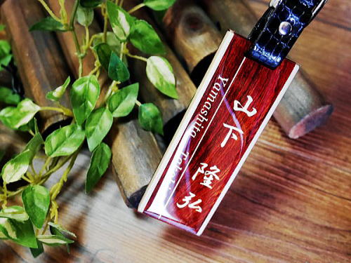 美しい銘木の木地に金文字で刻印します。